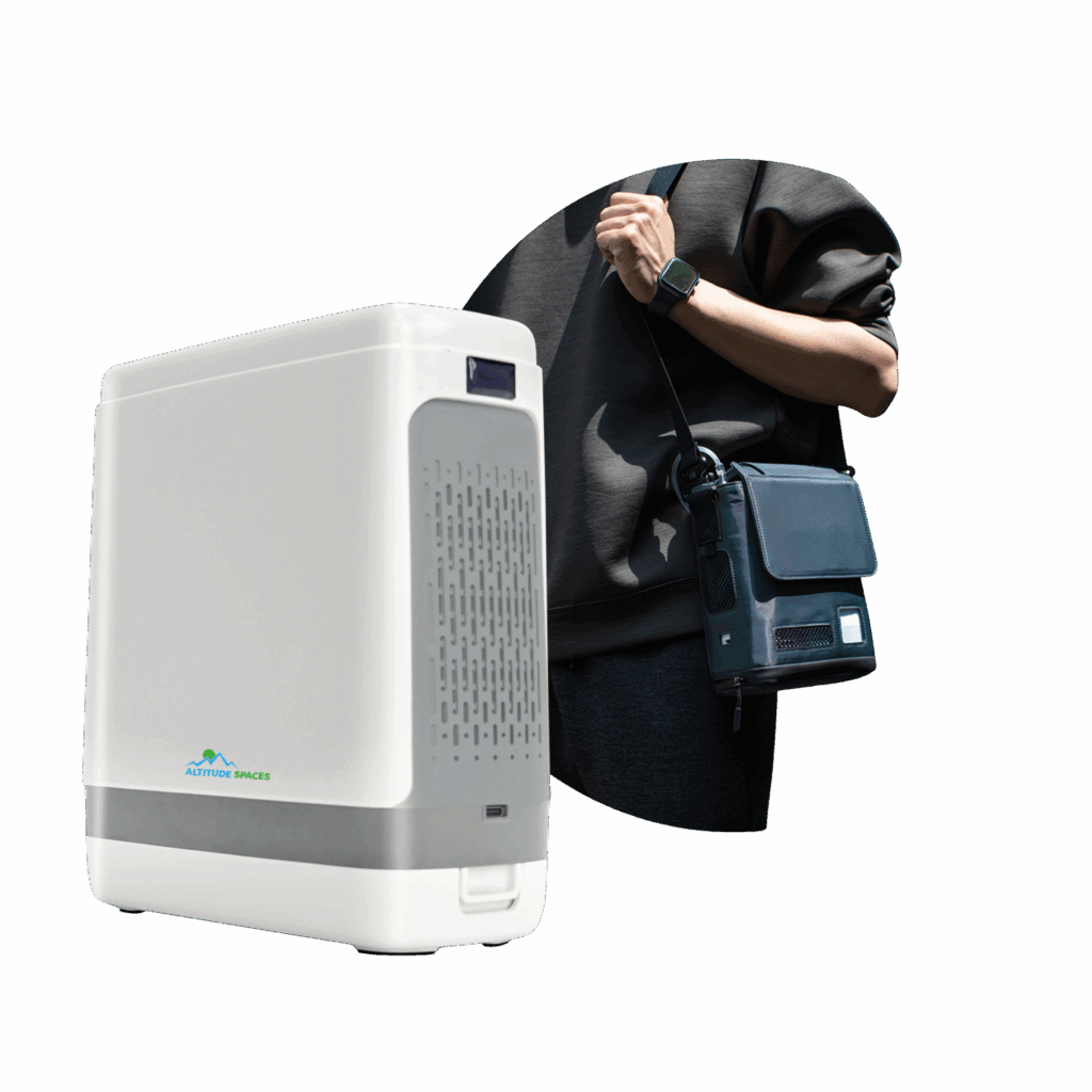 A compact device that filters ambient air and delivers concentrated oxygen (93–96%) through a nasal cannula or mask. Use it before or after your workout, or during rest periods. The extra oxygen increases your energy levels, reduces muscle pain, and supports natural recovery processes.